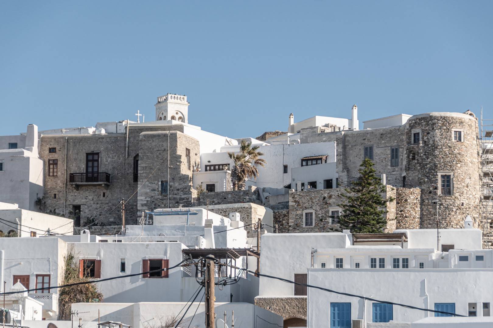 Our property is situated in Naxos Town, 300m from Naxos Castle. The Portara site is 400m away. The Archaeological Museum of Naxos is 100 m, while the Church of Panagia Mirtidiotisa is 400m from the property. The nearest airport is the Naxos Island National Airport, 3km away from the property.