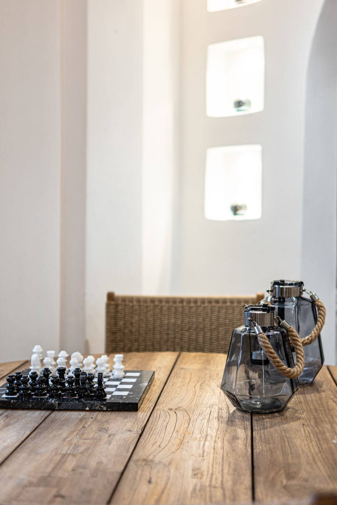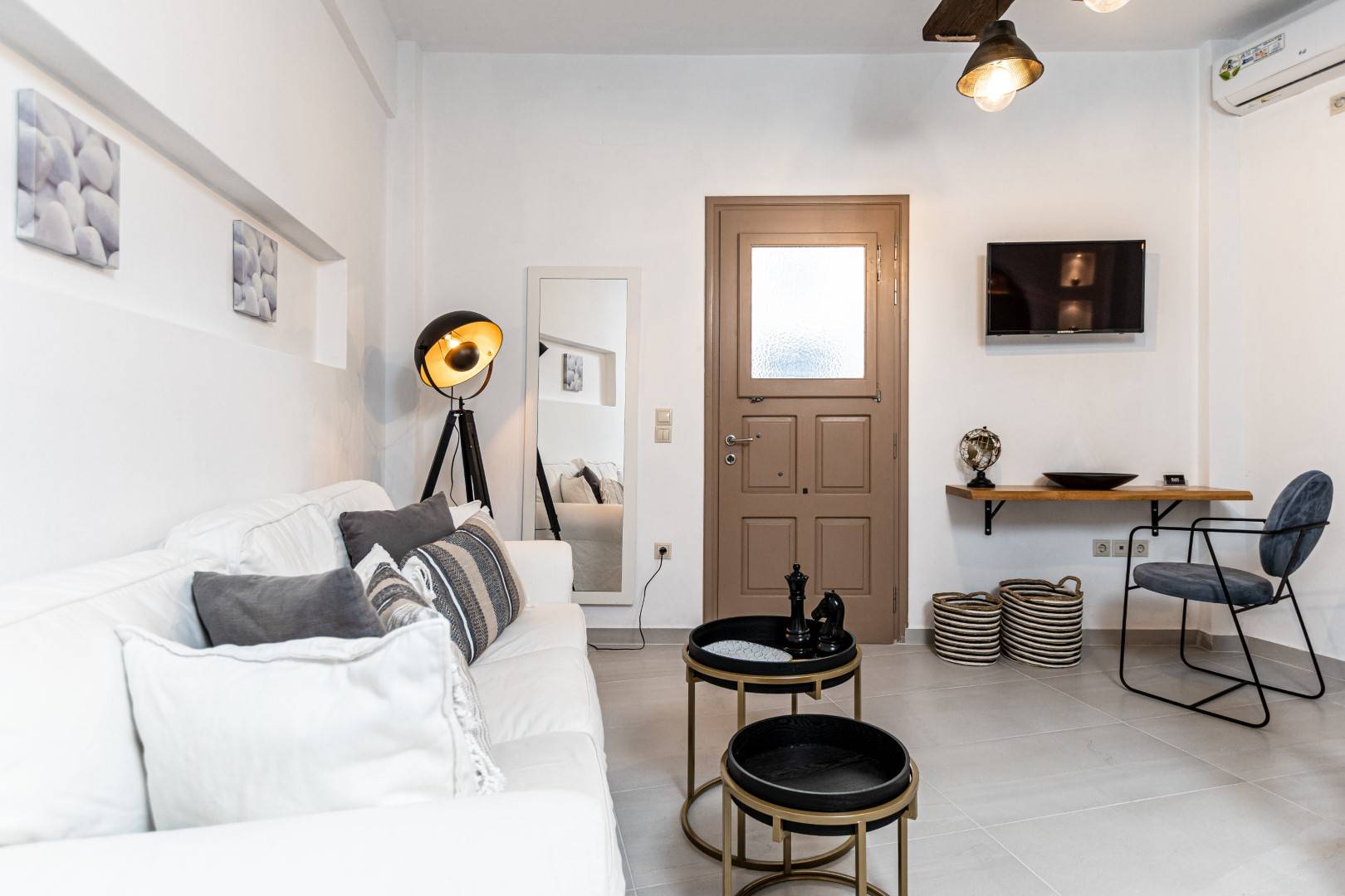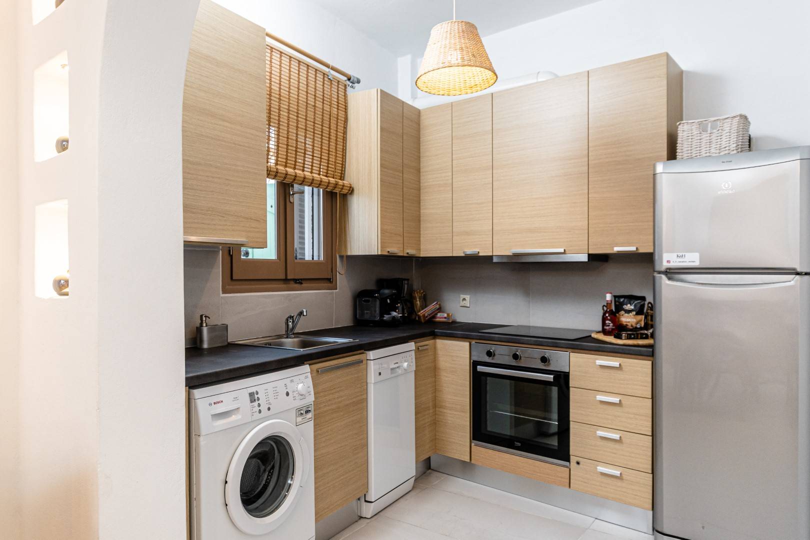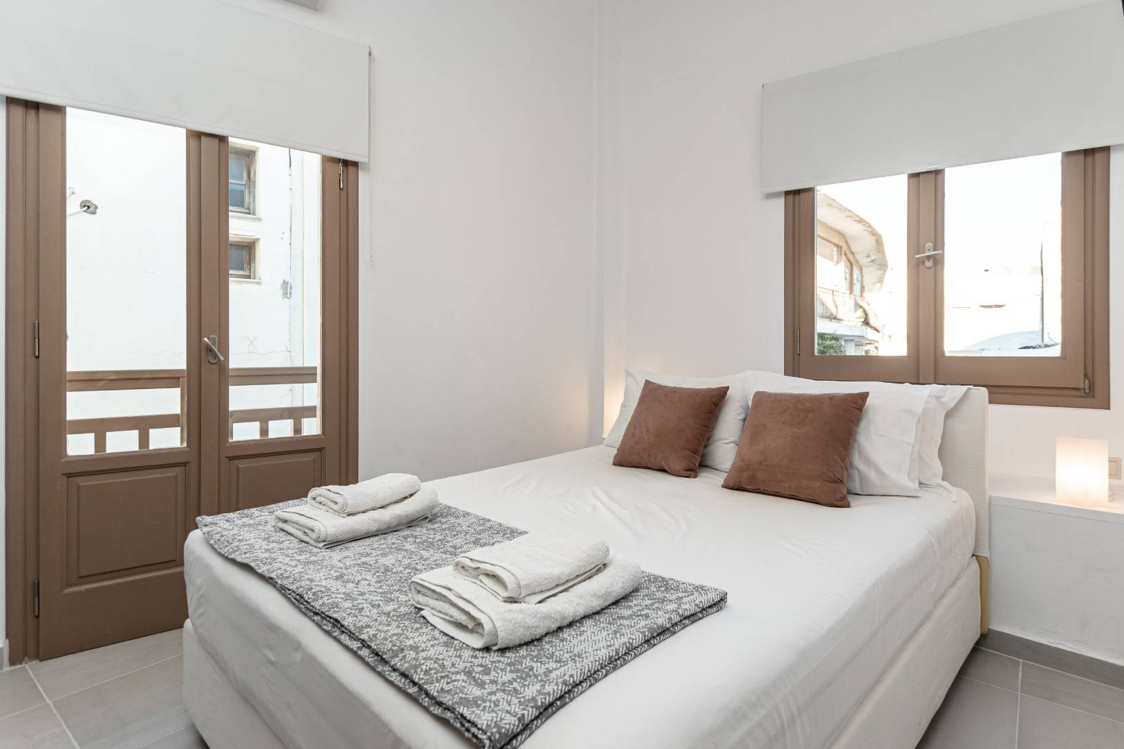 The lovely, fully furnished, contemporary 80m2 house is situated in the heart of the main town of Naxos. There is a dining area and a kitchen complete with a dishwasher and an oven. A flat-screen TV is available. This exceptional home away from home comprises 2 double bedrooms with hallway bathroom and a WC on the lower level. The house has a small but conveniently styled living area and a fully equipped kitchen with all its amenities and comforts. The view of the Naxos town and the Castle can be seen from the private roof terrace. This fully equipped mesmerizing lounge area has a romantic ambiance and holds a beautiful setting for our guests to relax and unwind.