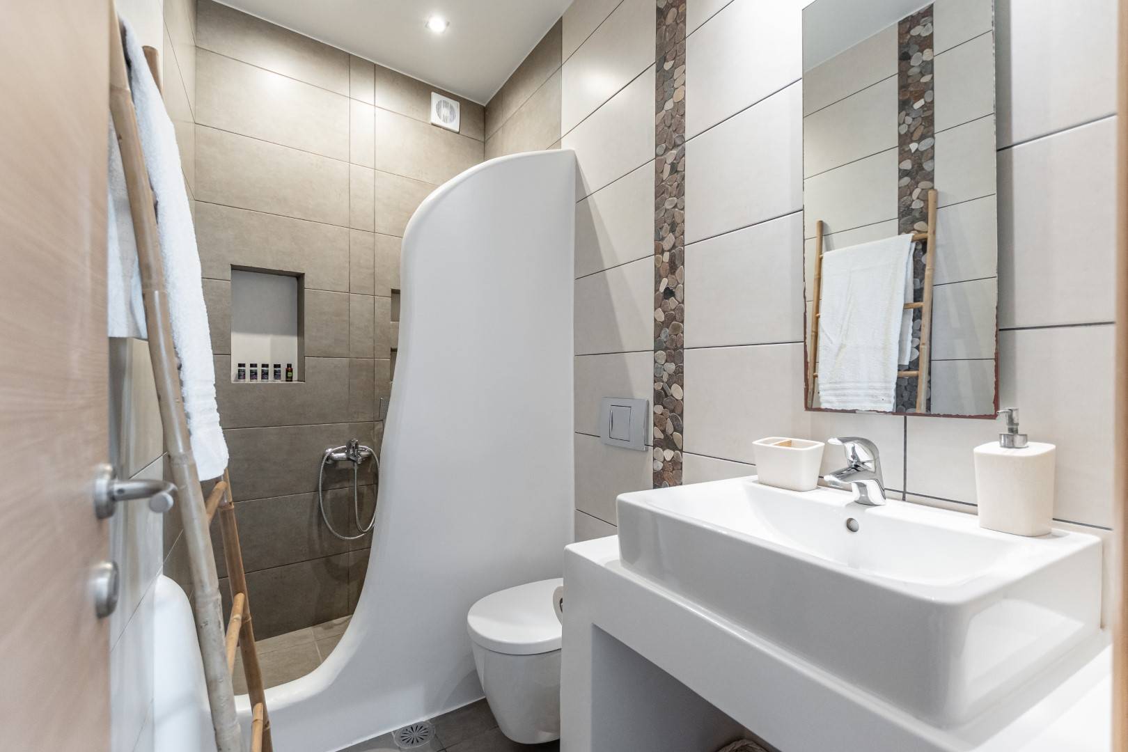 Everything is within walking distance. A pleasant 3 min walk where our guests can find mini markets, bus stops, restaurants, car rental offices and tourist shops and so forth.